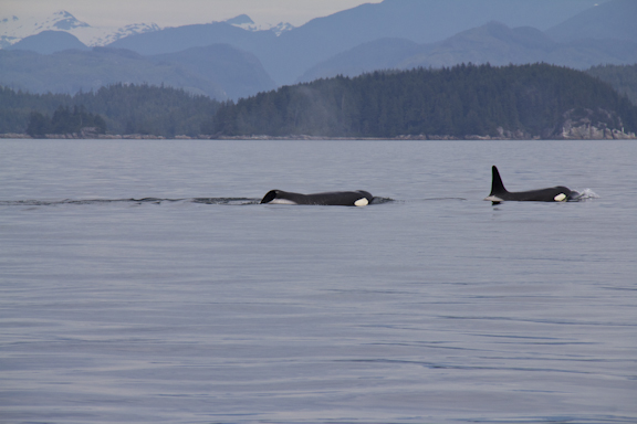 2 pm A30’s and B7’s just entered Blackfish Sound through Weynton Pass and were immediately accosted by 5-6 Pacific White Sided Dolphins.