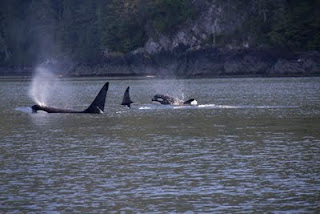 9 am The group of Orca by Lizard Point yesterday were first thought to be Resident Orca, but turned out to be Transient Orca that made their way into Blackfish Sound and over by the Whytcliffe Islets.